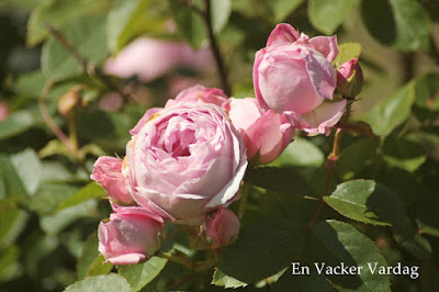 Morden Blush heter denna ros och nu återstår bara att hitta en plats åt den i trädgården. Finns det hjärterum så finns det stjärterum brukar man ju säga, så vi skall väl tro att det ordnar sig med platsen. Så det blir väl att fatta spaden och dra på sig trädgårdshandskarna ännu en gång och hoppas att den skall trivas hos oss!